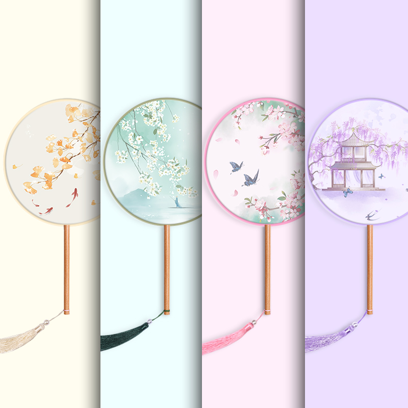 Fan Ancient Wind Regiment Fan Half Overdraft Long Handle Child Summer Ancient Clothing Hanfu Dance Fan Embroidery Han Fu Ancient Dress Round Fan
