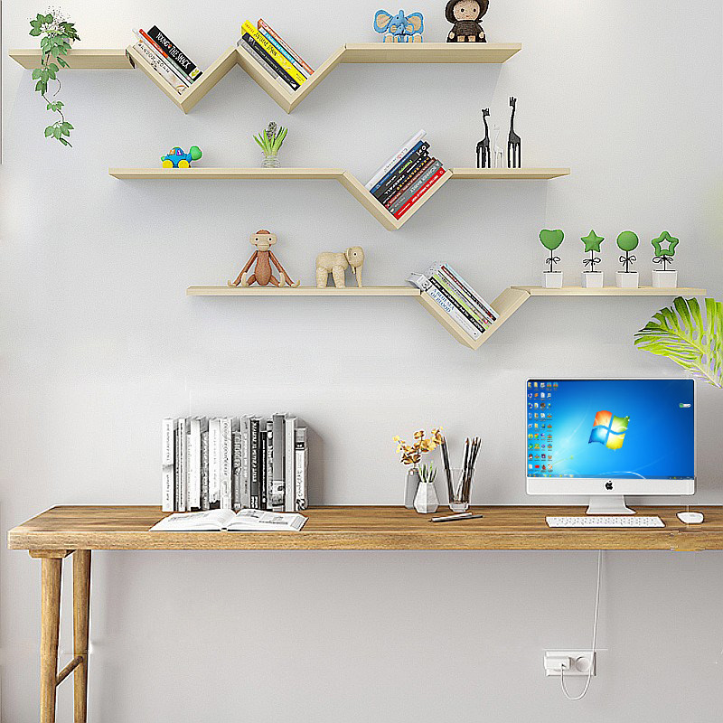 Wall shelf V-shaped solid wood creative wall bookshelf living room bedroom storage modern simple wall decoration frame