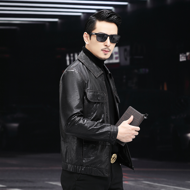 MG Spring and Autumn Head Layer Petty Cover Men's Real Fur Clothes Reduced Short Locomotive Leather Jacket