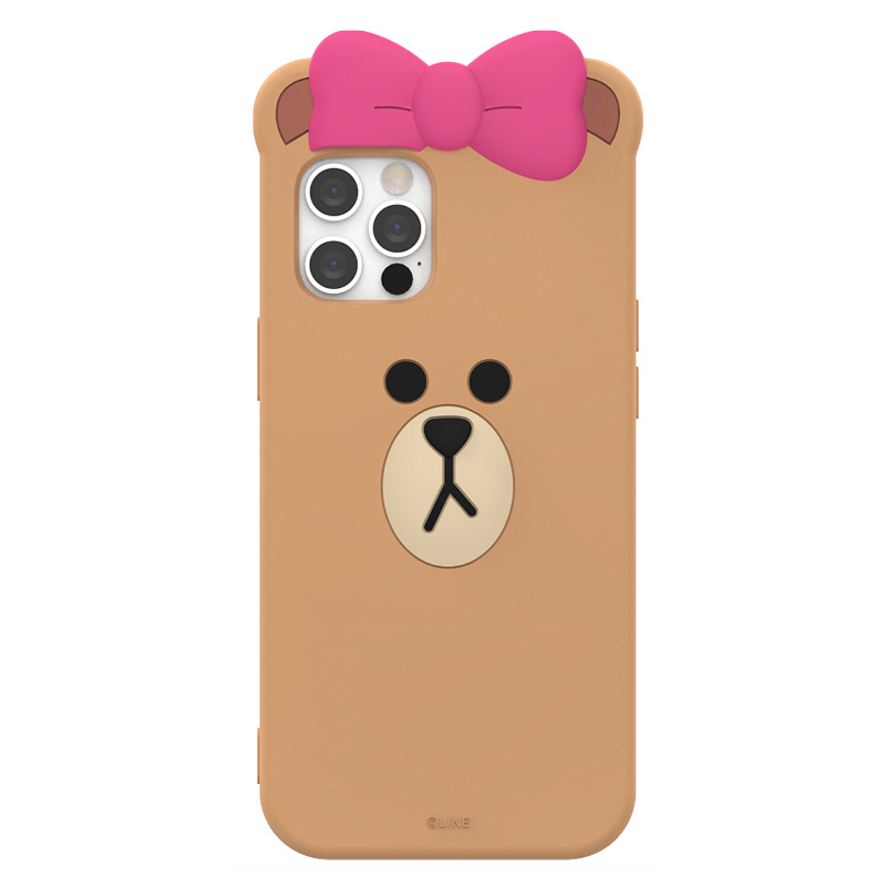 LINE Brown Bear iPhone 13 stereo phone case pro cartoon cute max applies Apple 12 silicone protective sleeve female cartoon cute anti-fall all-pack mobile phone protection set new models