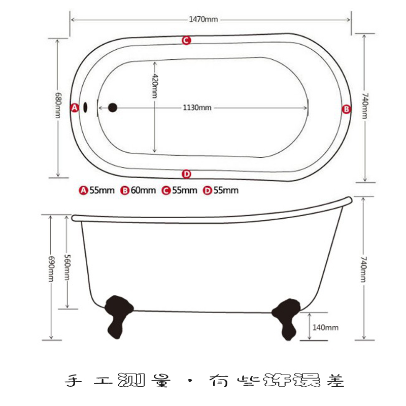 Small household type bathtub Adult deepening Bath Tub Light Lavish Bath Tub Bath Tub Cast-iron Ceramic Bathtubs Enamel Bathtubs