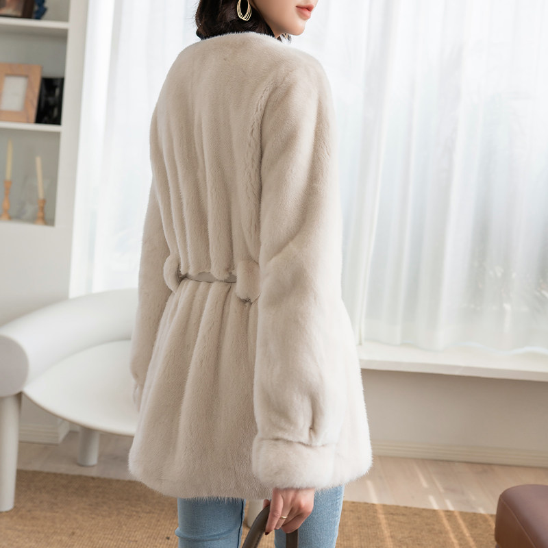 2022 winter new mink fur coat women's whole mink mid-length version V-neck waist young fashion mink fur coat
