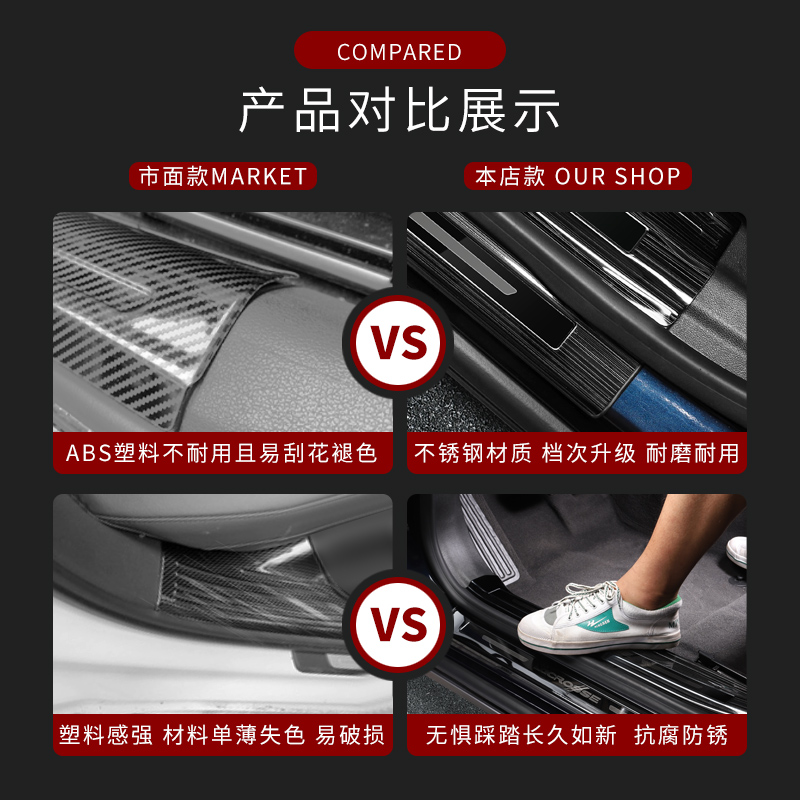 Three generations upgraded-black titanium wire drawing inner threshold bar (4 pieces of cover) Three generations upgraded-black titanium wire drawing outer threshold bar (4 pieces of cover) Three generations upgrade-black titanium wire drawing inner outer threshold strip (8 pieces of sleeve) Three
