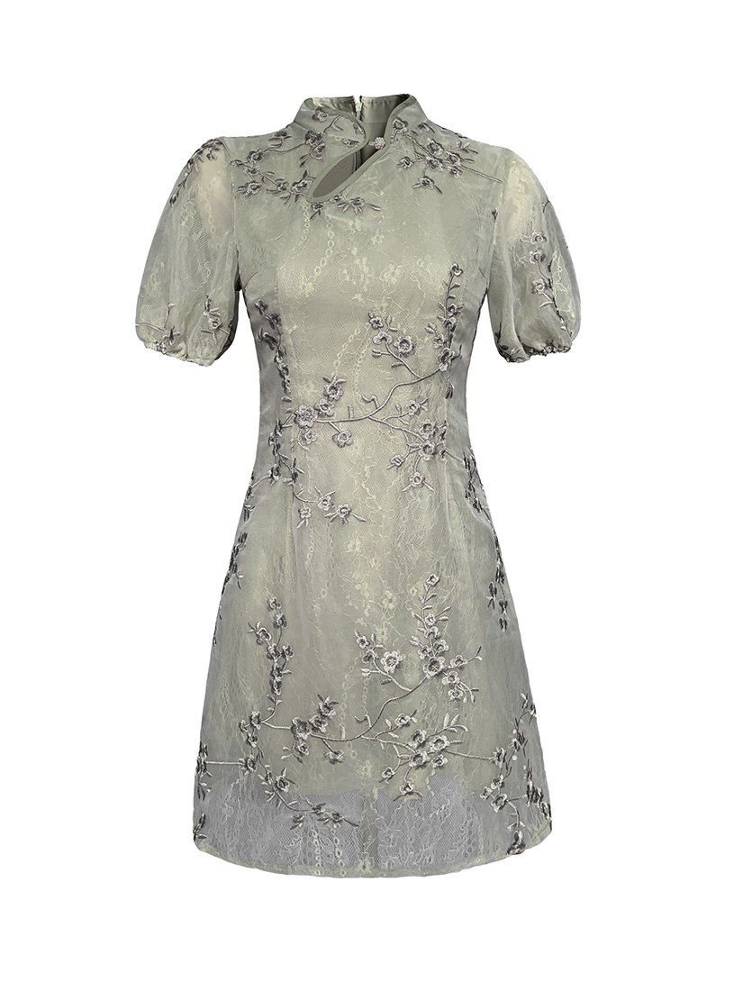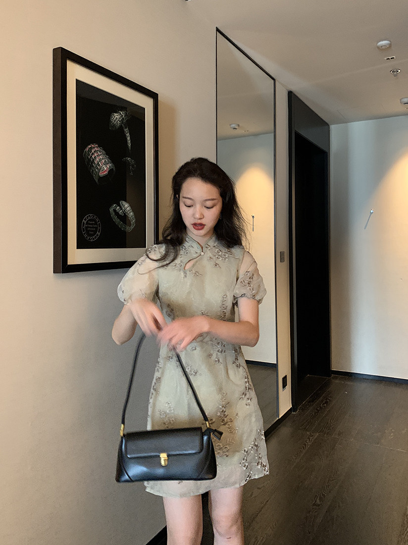 (Limited time clearance) Design niche floral improved cheongsam dress women's summer waist slimming mid-length skirt