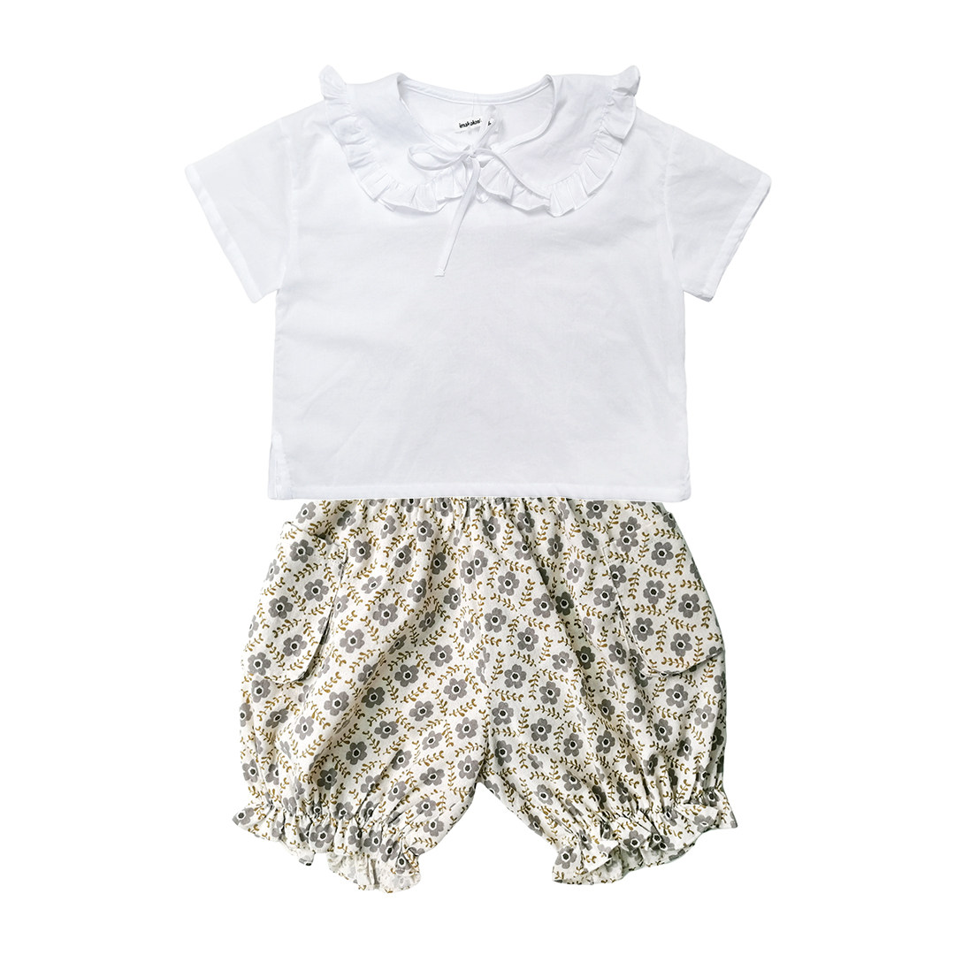 Child Clothing Girl Child Short Sleeve Suit Summer 2021 New Two Sets White Blouse Shorts Subpure Cotton 21636-Taobao