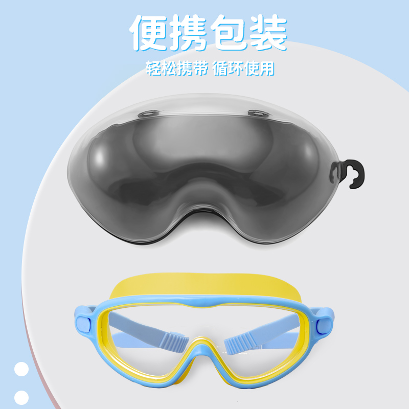 Lemon yellow light brown pink children's swimming goggles-yellow blue children's swimming goggles-light pink wide-angle large frame with mirror box HD anti-fog