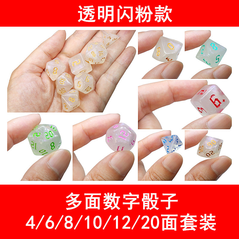 Transparent Flash Powder Multi-faceted Dice Digital Color Sub-Runner Table Tours Accessories 4 6 8 10 12 20 20 Griddle Props