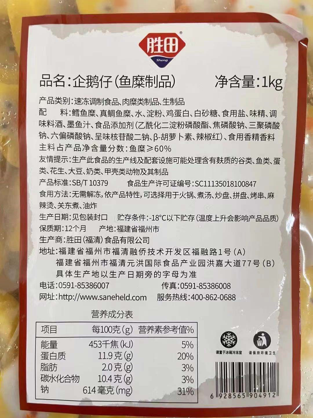 Shengtian Hot Pot Penguin Paparazzi Fish Rolls Day Style Lanoodles Material 1kg Packs Penguin Paparazzi Balls 2 Catfish