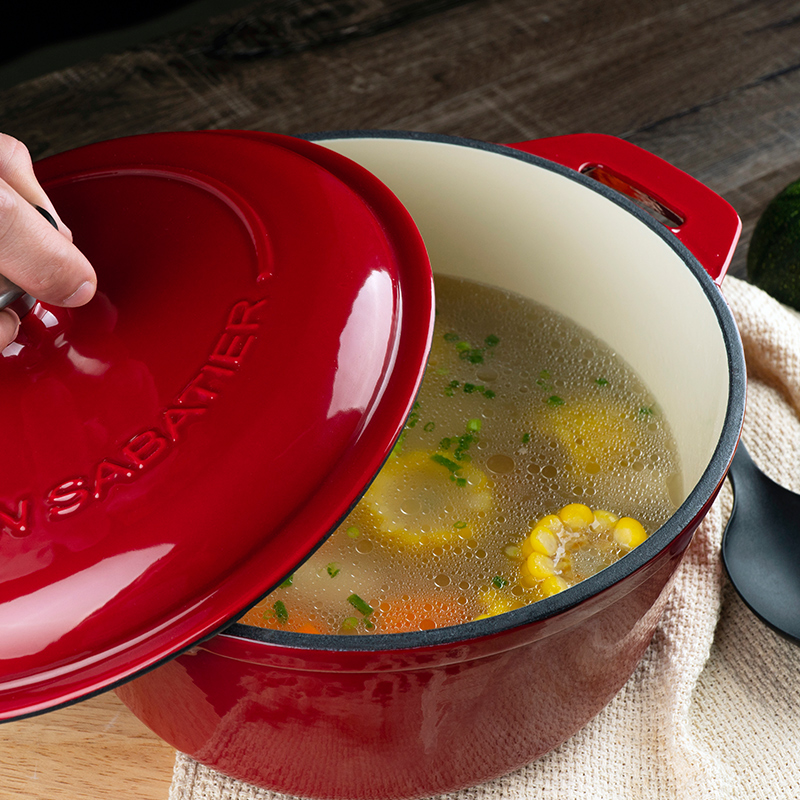 French Sabadi cast iron double-ear enamel pot 24CM household kitchen pot steamer soup pot stew pot Universal