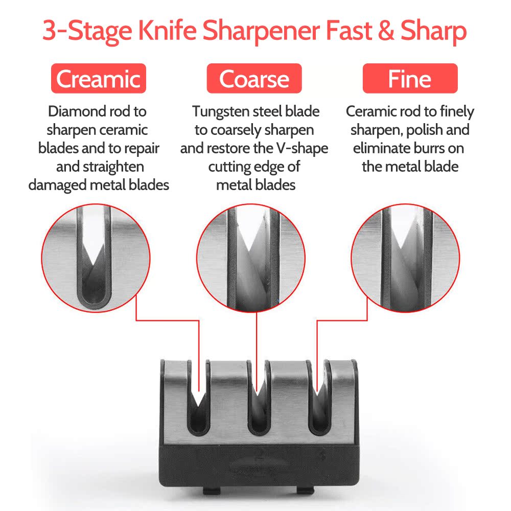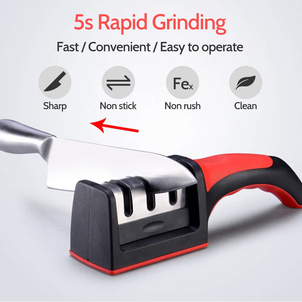 Kitchen hand-held sharpener artifact kitchen knife three-section tungsten steel quick-blade grinding wheel (shipped from Australia)
