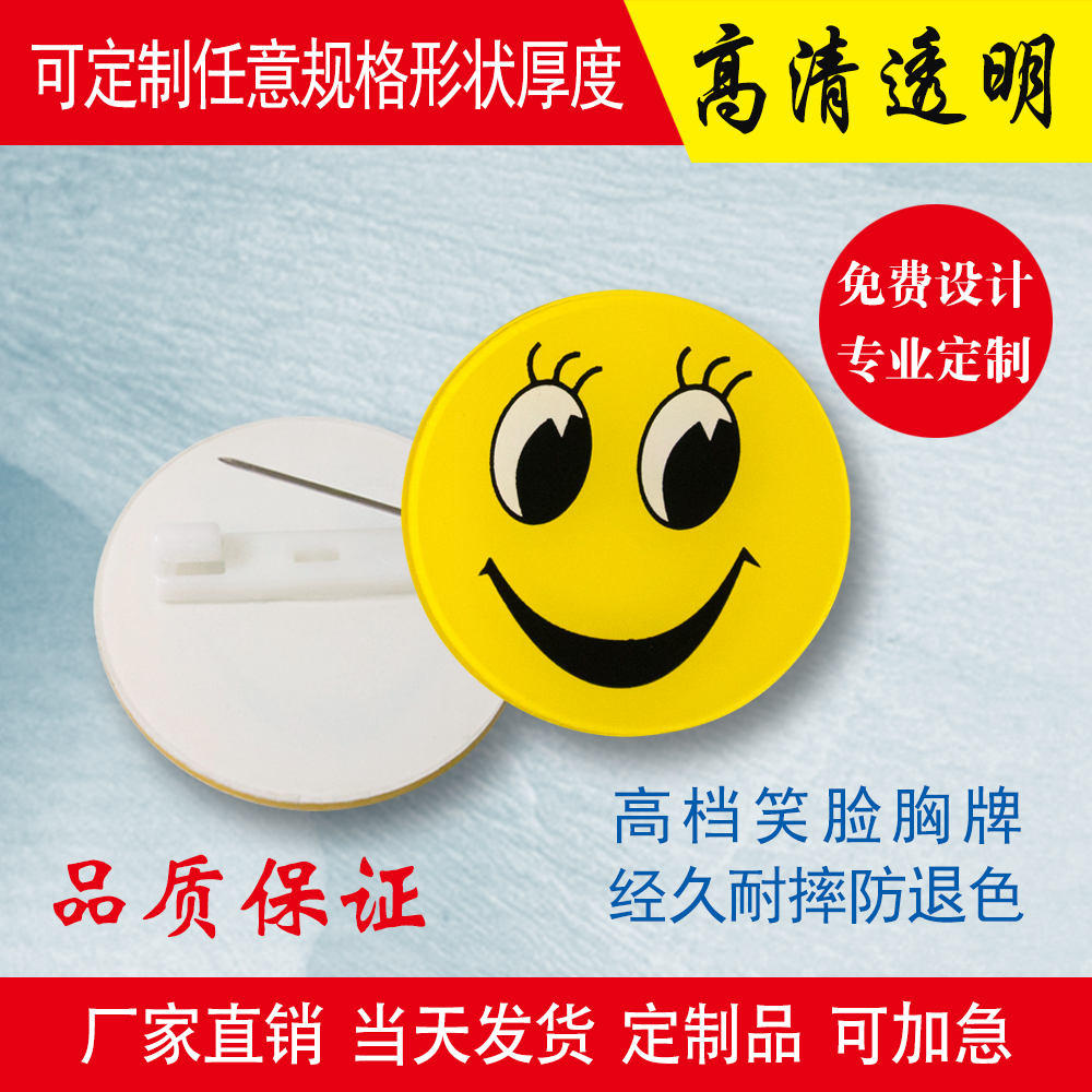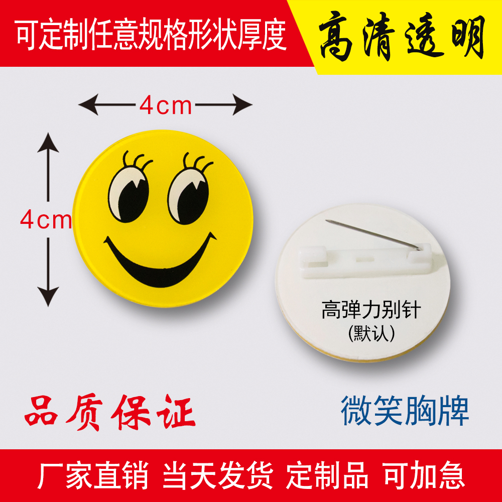 Acrylic smiley face smile to serve you employee badge badge badge brooch general badge can be customized