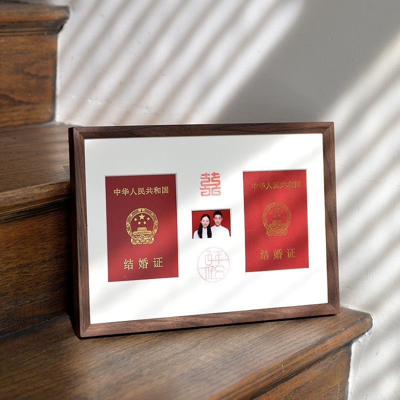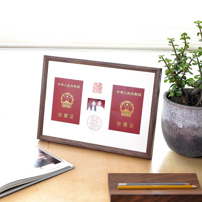 Marriage certificate frame registration photography frame a4 solid wood stand to be certified wedding photo wall gift washing photo tenon socket frame