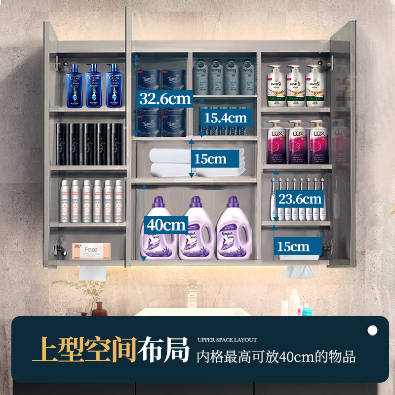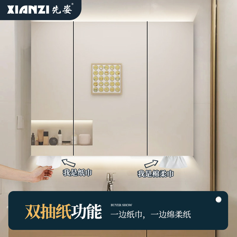First Pose Mirror Cabinet Hanging Wall Type Stainless Steel Bathroom Mirror Cabinet With LED Light Makeup Room Custom Plus High Set Make 1 m High