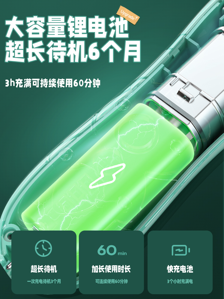 (upgrade with green) IPX7 Class waterproof (full body washable) Lithium battery liquid crystal without injury the scalp (upgrade powder) IPX7 level waterproof (full body water washable) lithium battery