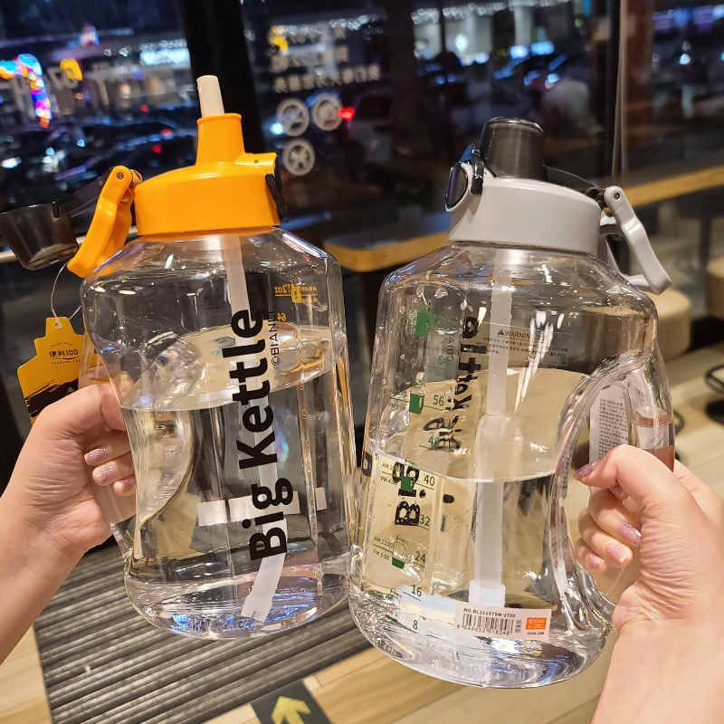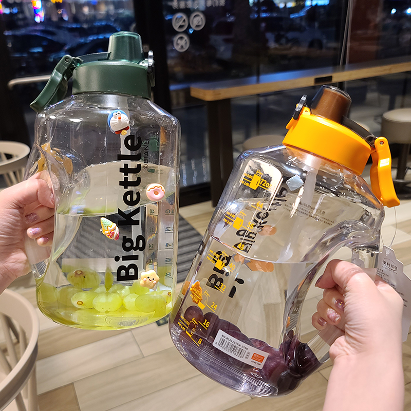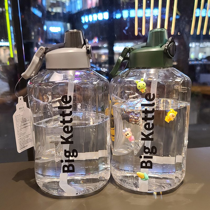 Summer sports fitness oversize water glass portable 2000ml large capacity straw cup ton Barrel Kettle Space Cup