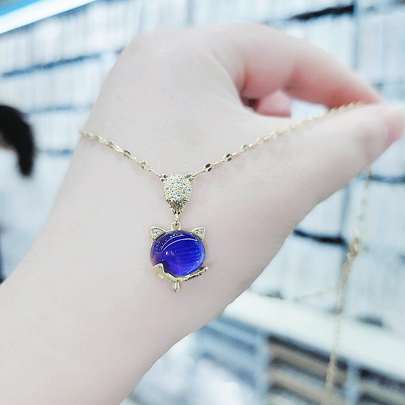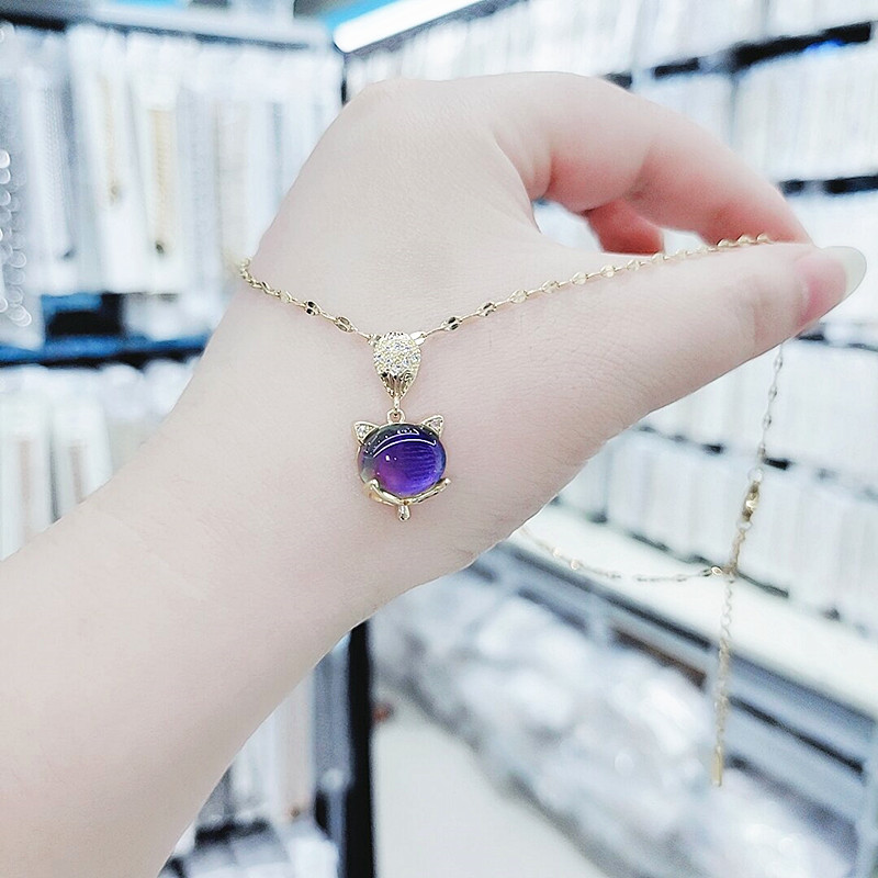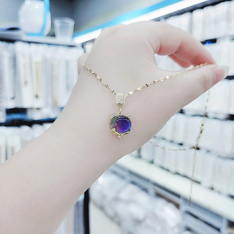 Japan and South Korea titanium steel fox rushing warm stone necklace female temperament all-match simple clavicle chain niche design necklace trend