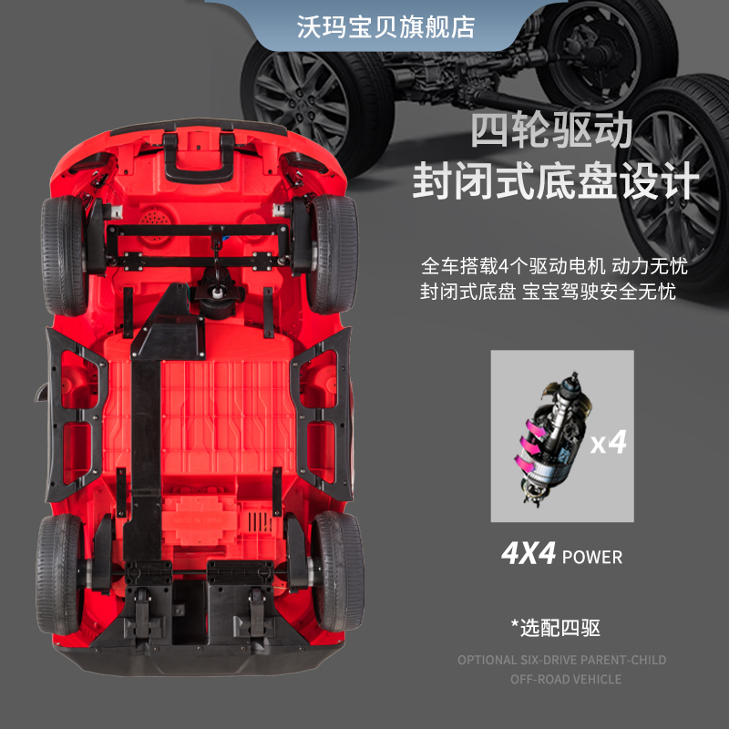 Four-wheel drive (red) + plastic wheels + leather seat + Bluetooth player + swing