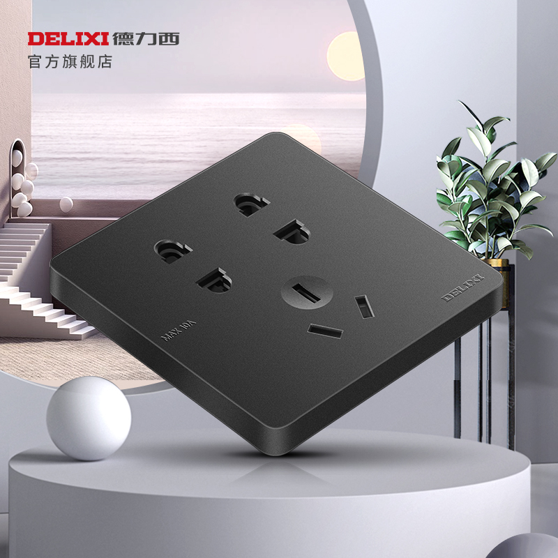 Force West Official Flagship Store Seven Holes Switch Socket Four Holes Wall 86 Type Porous Large Panel Black