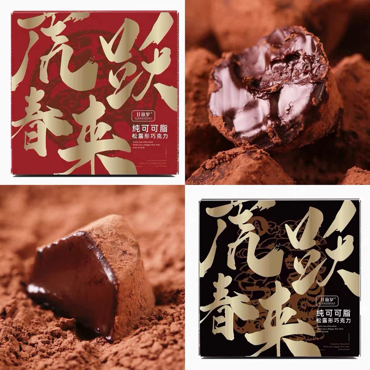 Gan Nouri Truffle Black Chocolate Delight Candy Tiger Year Gift Box 500g Pure Cocoa Butter Tiger Leaping Spring To Black Gold Red Gold