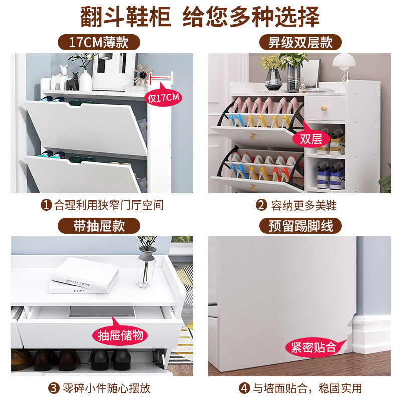 Ultra-thin 17cm tipping bucket shoe cabinet home door large-capacity porch cabinet economical simple storage locker shoe rack