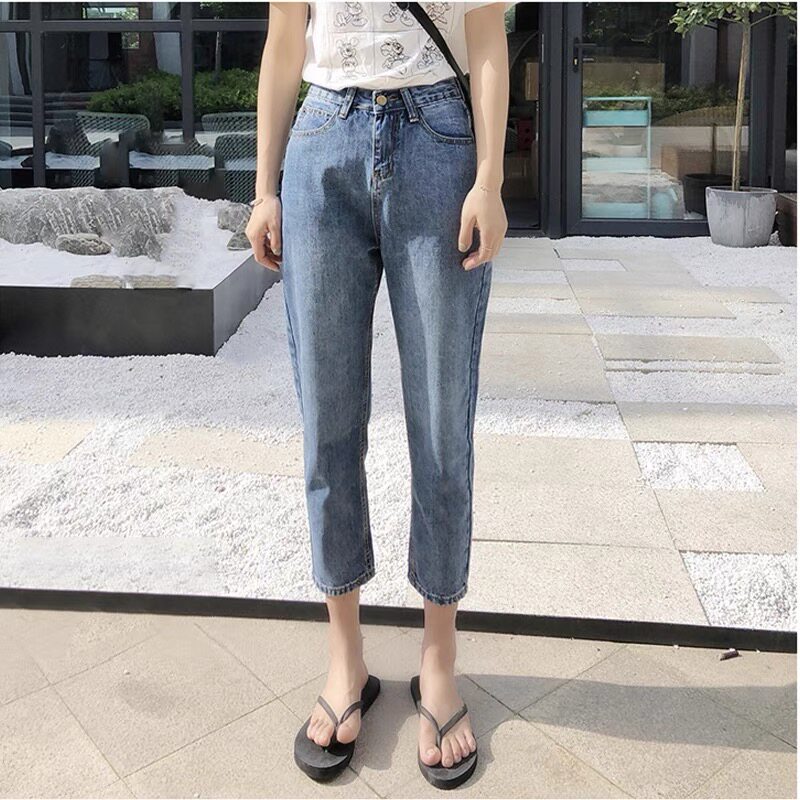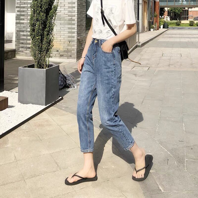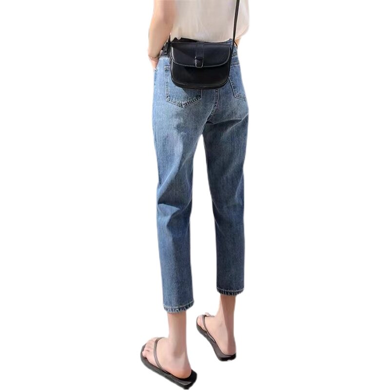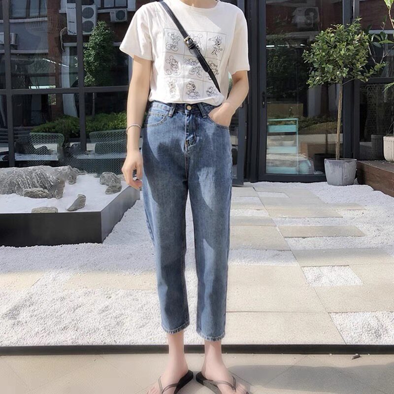 South Korea 2022 spring summer style jeans female high waist loose straight drum display slim Harun pants little sub-old daddy Roof pants