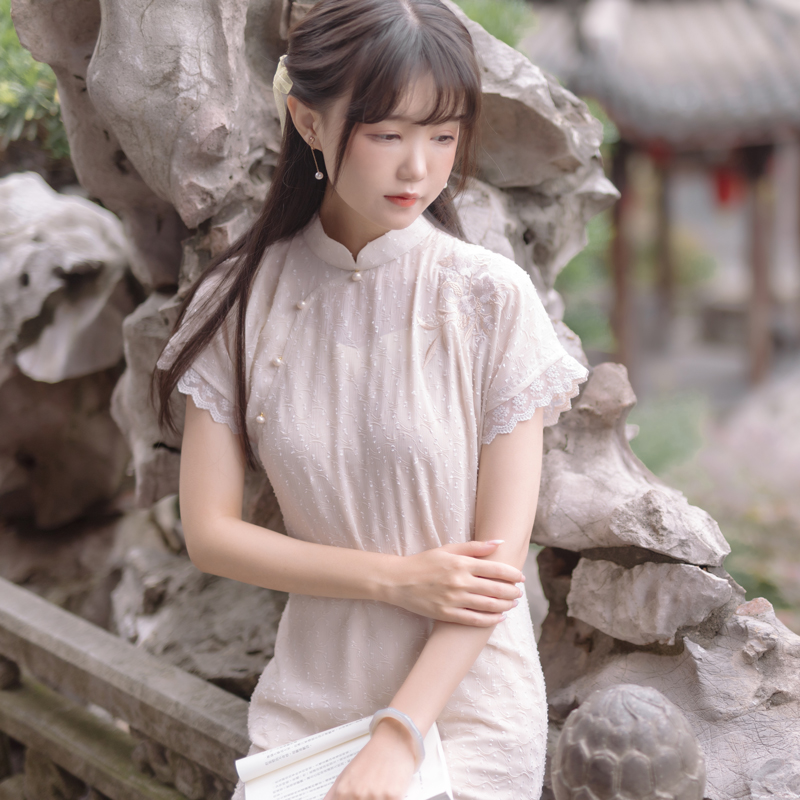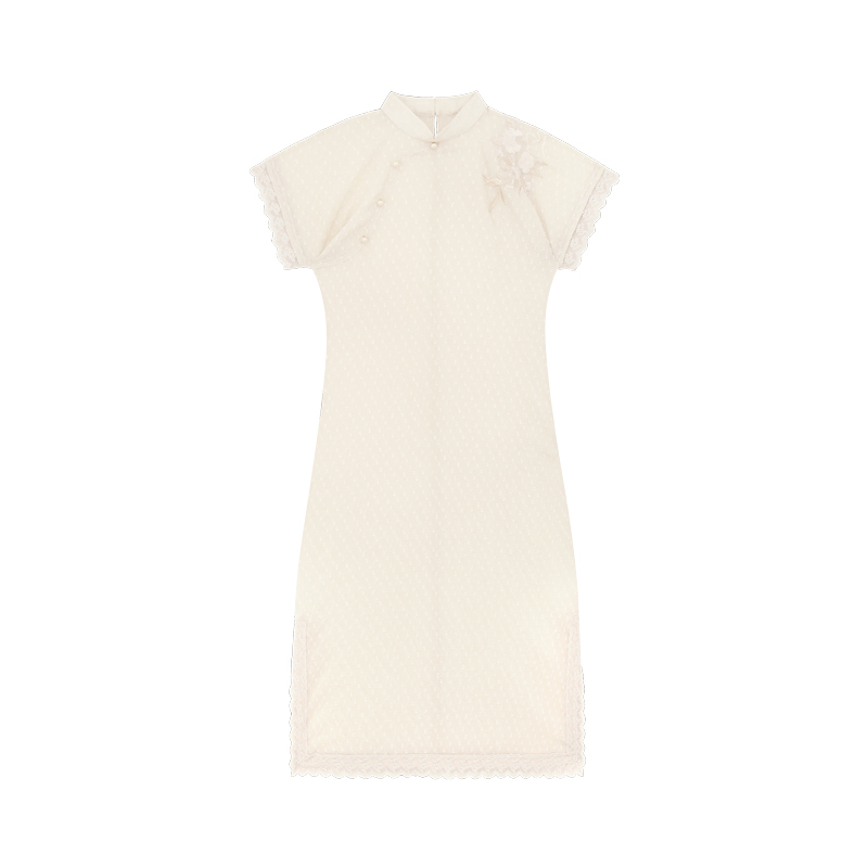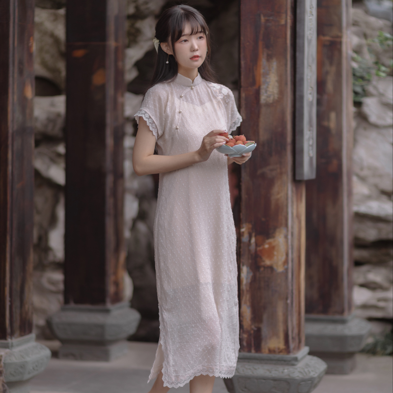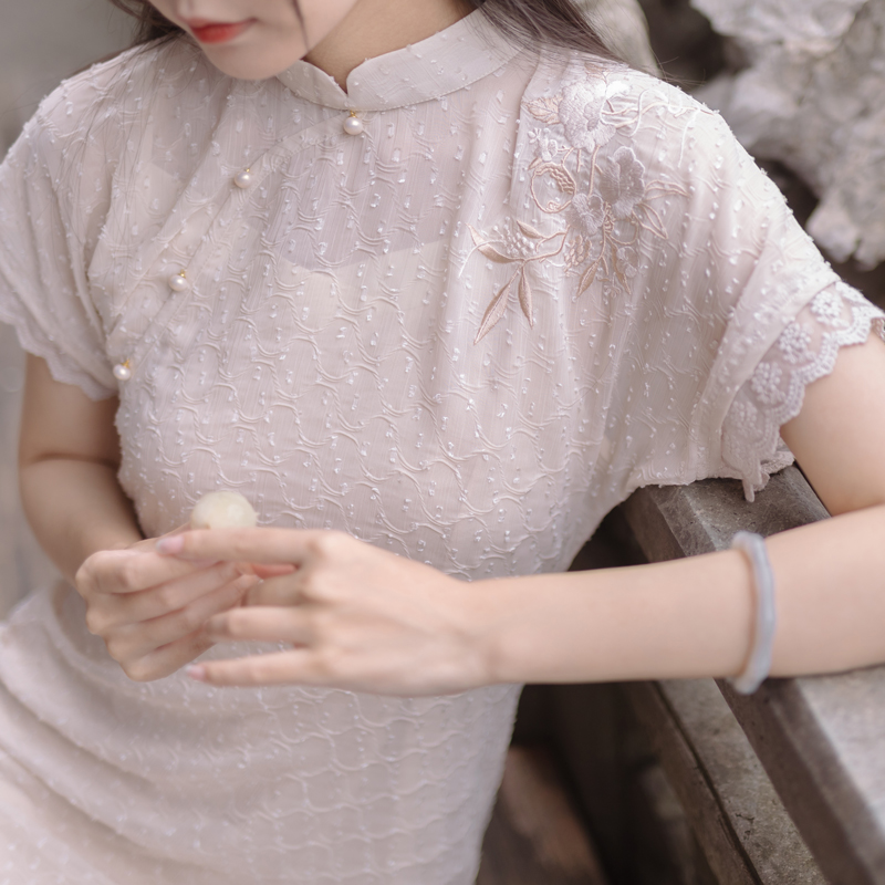 Chuandai Time: Xiao Lizhi Original Design Summer Thin Short Sleeve Cheongsam Dress Split Sheer Overskirt