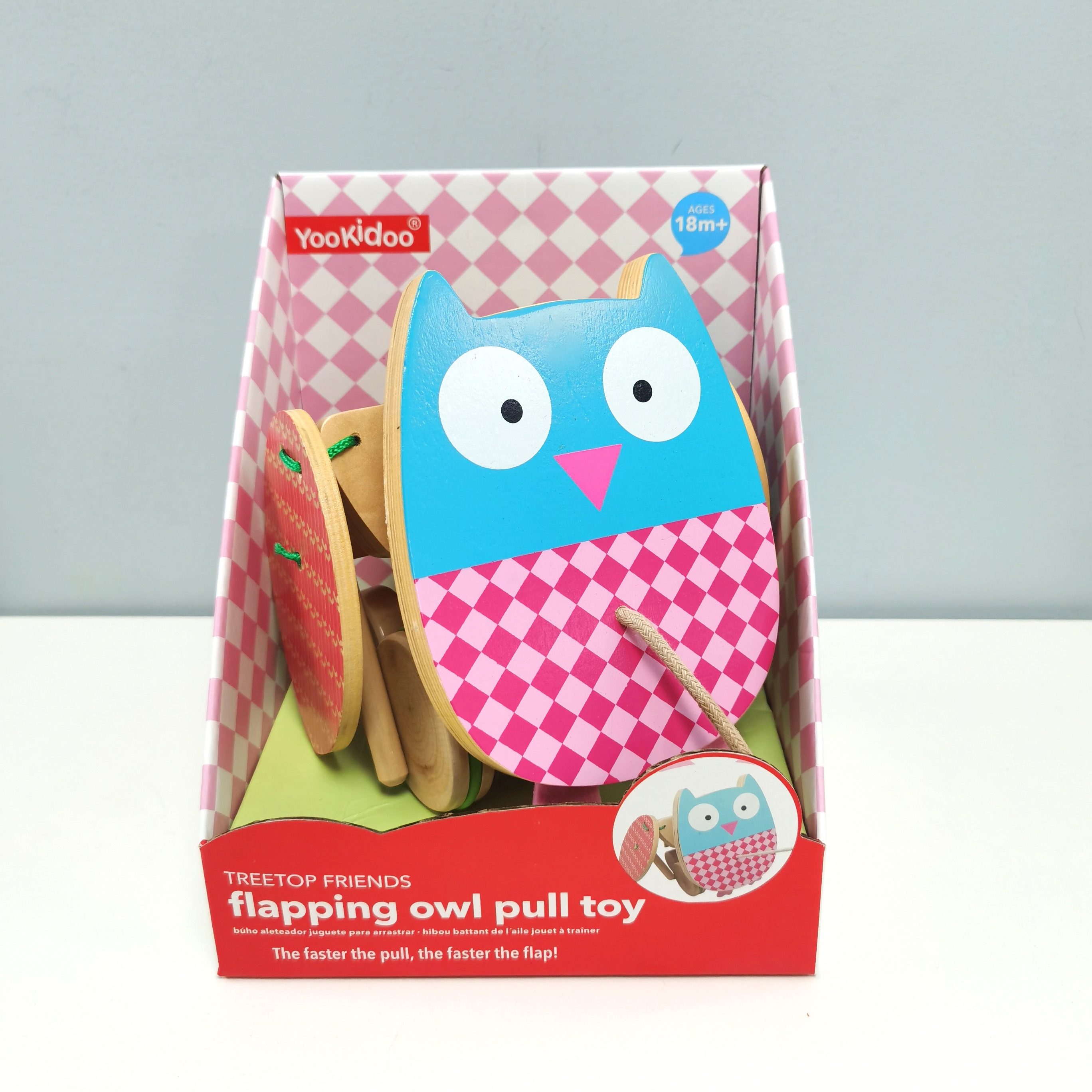 Exported to the U.S. version of YOOKI's wooden owl baby toddler trolley will move with a pull of its wings