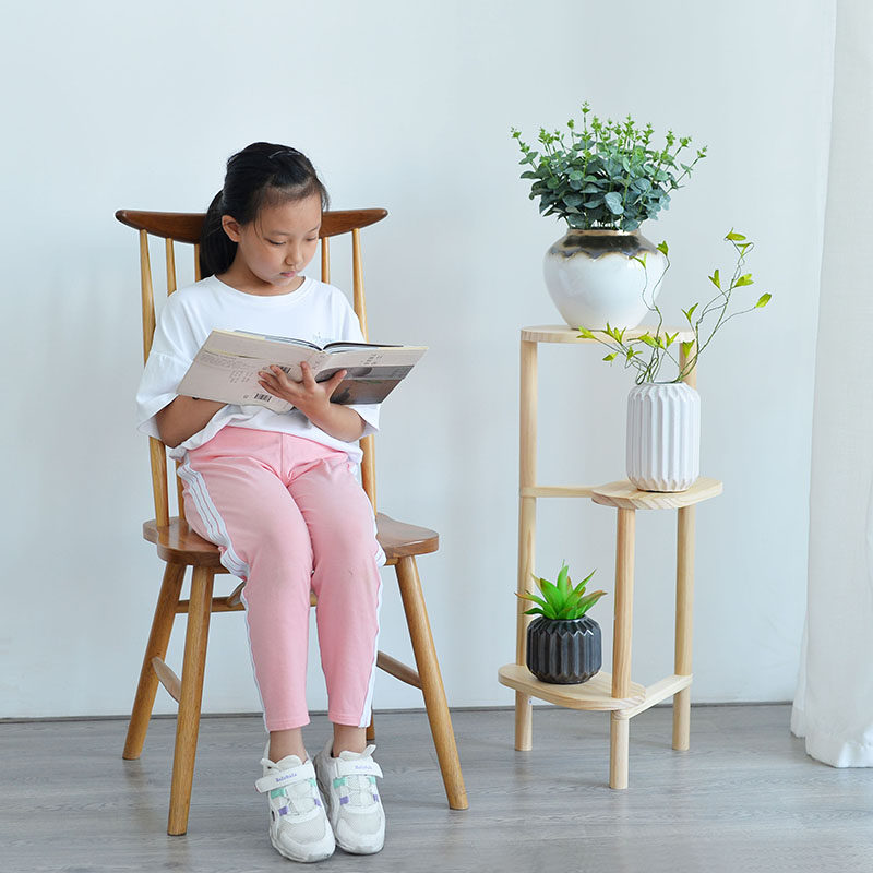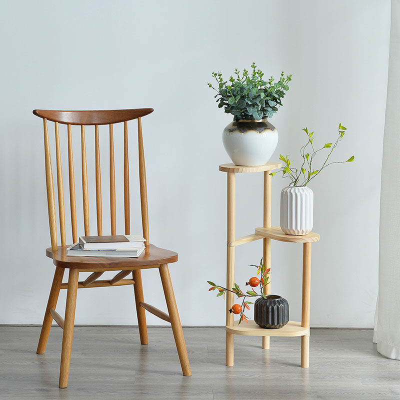 Nordic Solid Wood Triple Floor Landing Flower Shelf Light Extravagant Log Triangle Wall Corner Flower Shelf Shelf Balcony Small Family Type