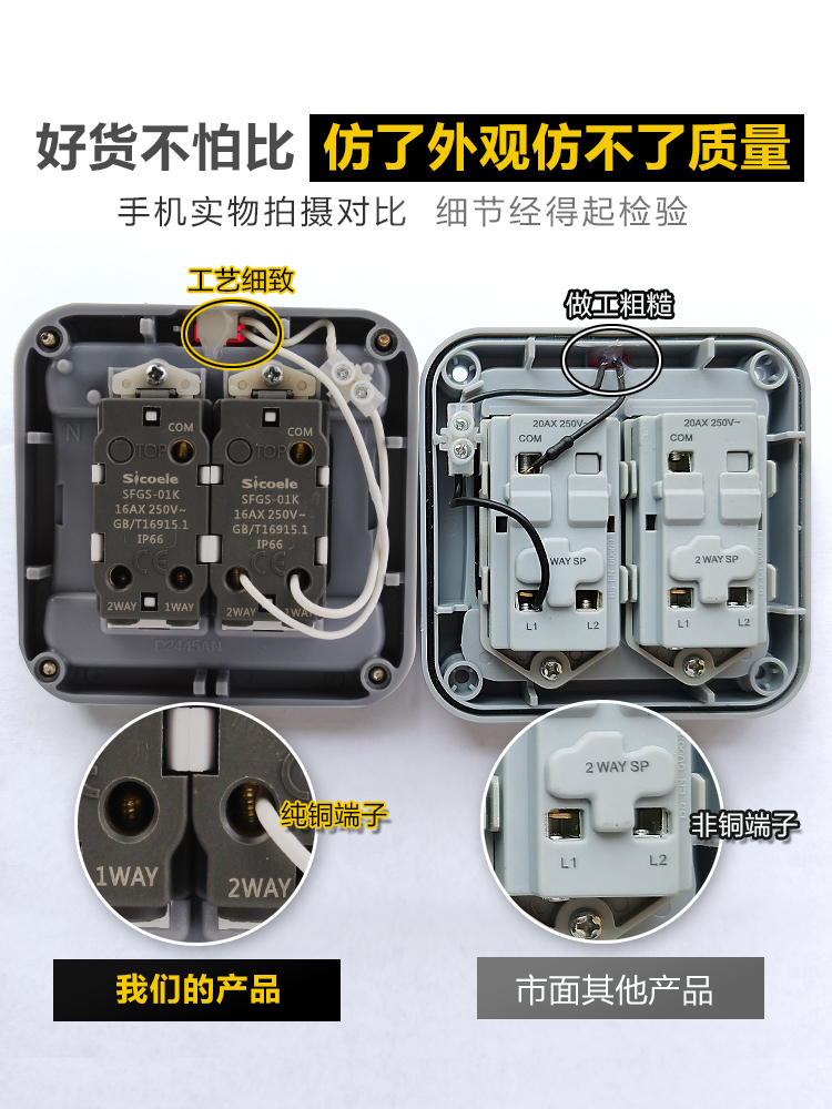 Outdoor waterproof switch outdoor industrial power supply rainproof single open double control panel bathroom garden wall
