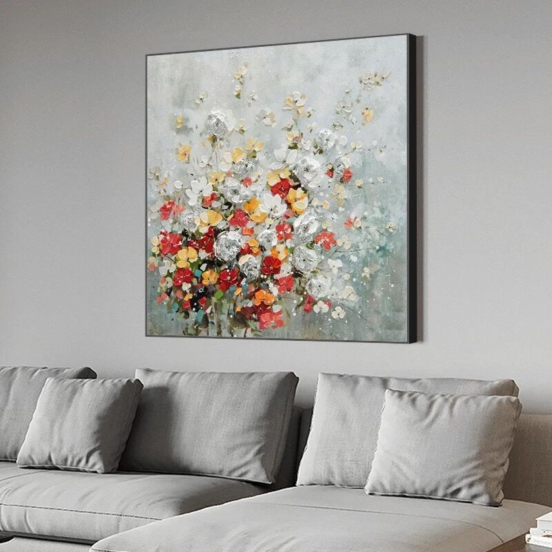 Pure hand-painted oil painting abstract flower restaurant single hanging painting bedroom bedside decoration painting warm living room sofa mural