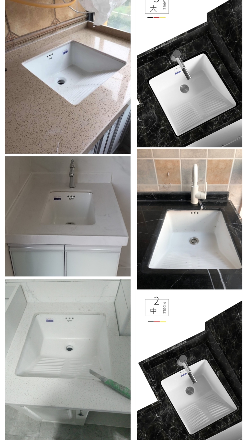 Under the counter laundry basin small apartment with washboard basin embedded small ceramic wash basin square deepened sink