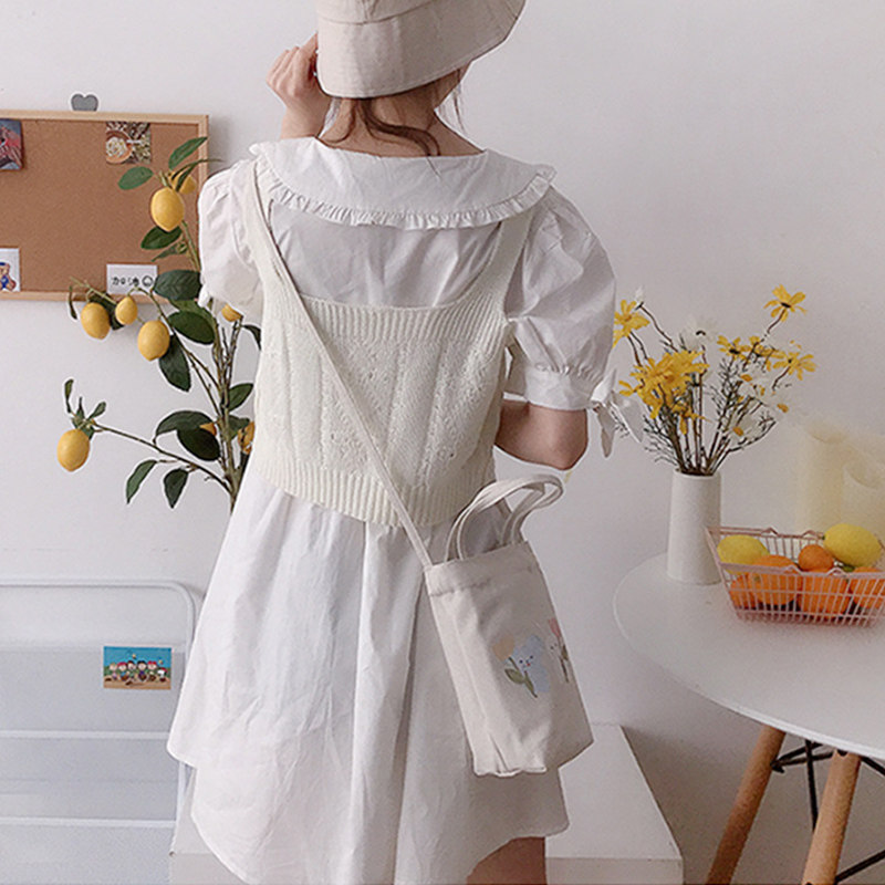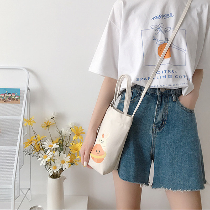 Canvas Bucket Bag Female Summer Messenger 2023 New Student Portable Water Bottle Water Cup Umbrella Mobile Phone Small Bag