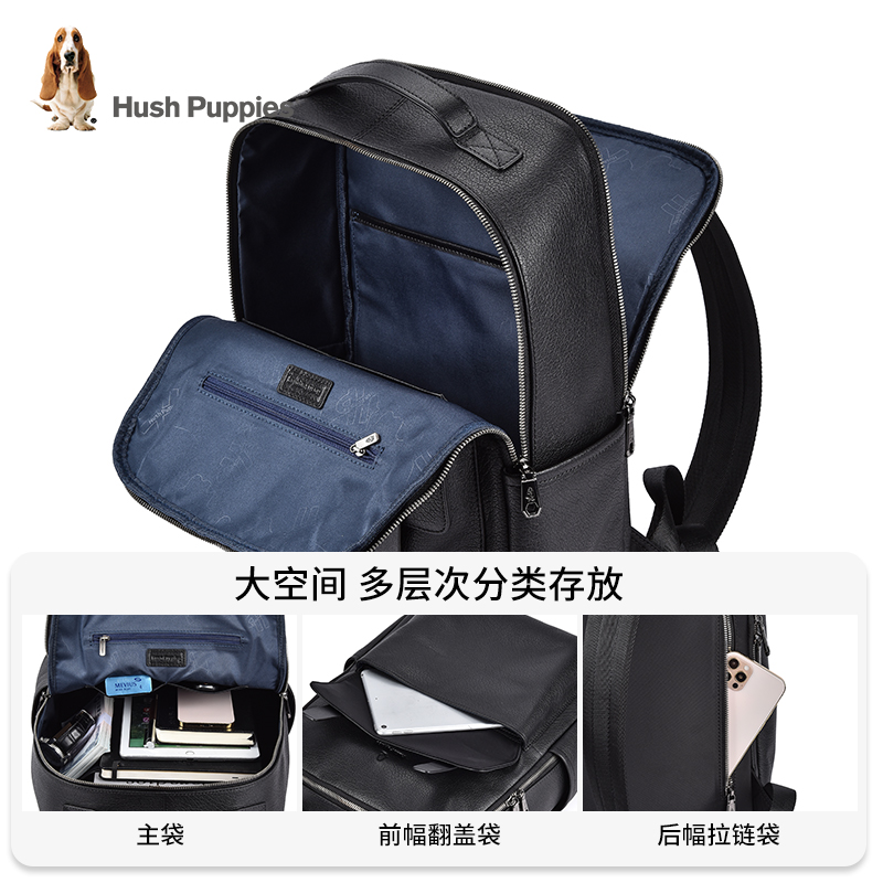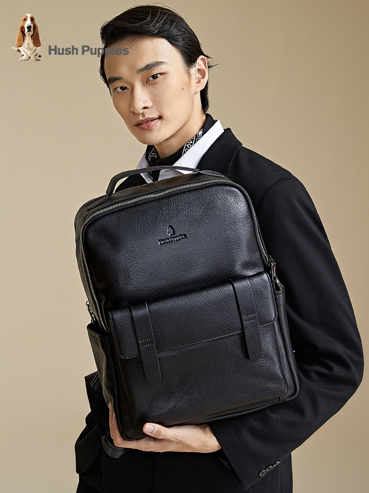 Hush Puppies Men's Backpack Leather Large Capacity Business Casual Computer Bag Travel Backpack Trend Fashion Leather Bag