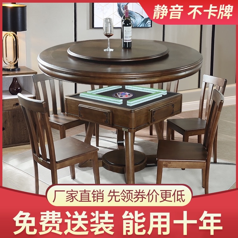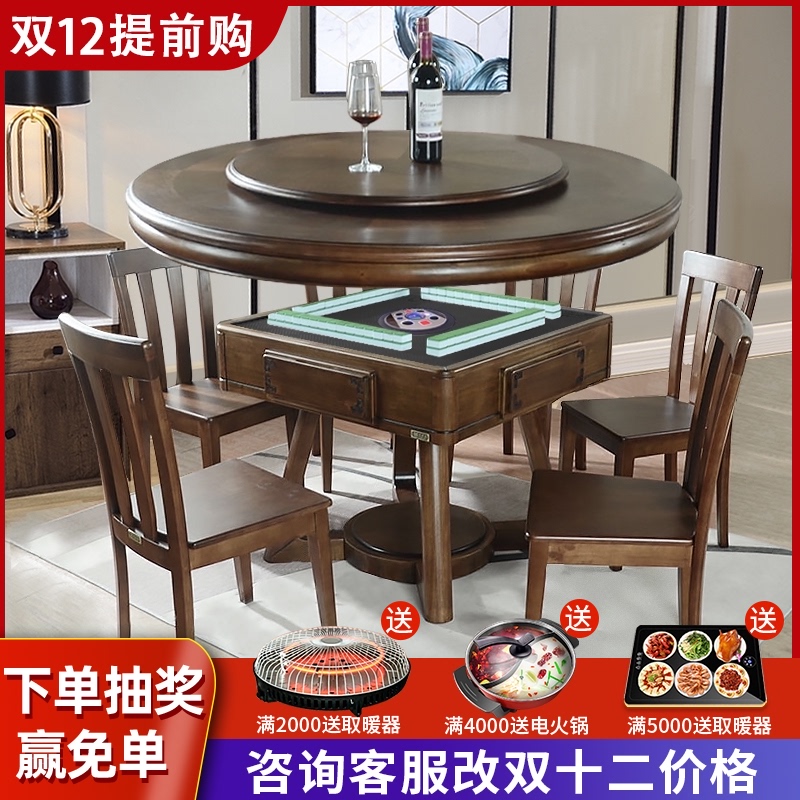 2022 new mahjong machine automatic dining table dual-purpose mute mahjong table home new Chinese style solid wood round table