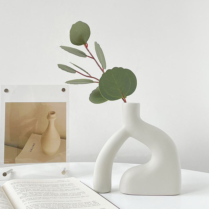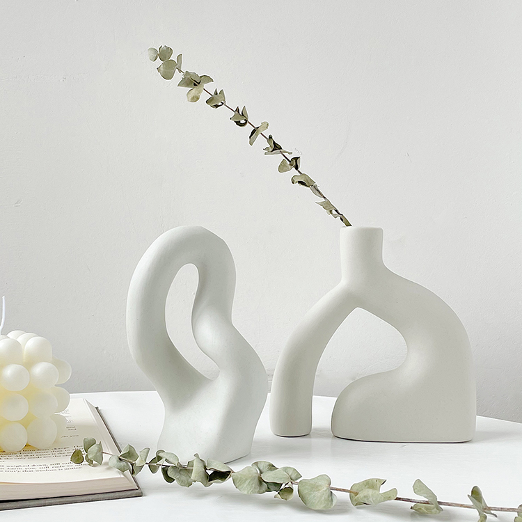 Nordic decorative vase abstract ceramic decoration ins wind soft-packed desktop porch home simple white plain embryo vase