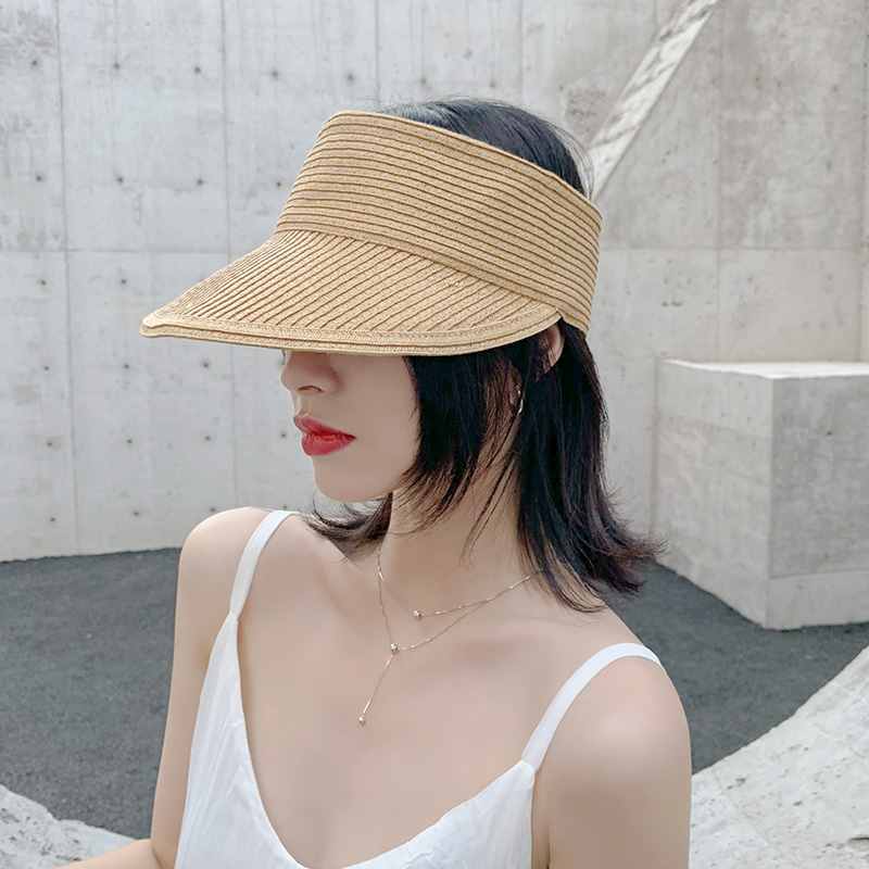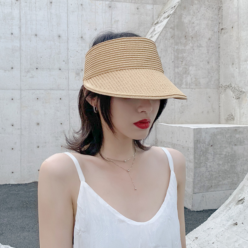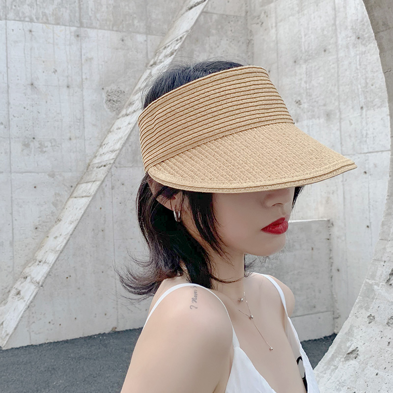 Korean version of the empty top straw hat women's summer beach sunshade sunscreen anti-UV big brim cover face outdoor no top hat