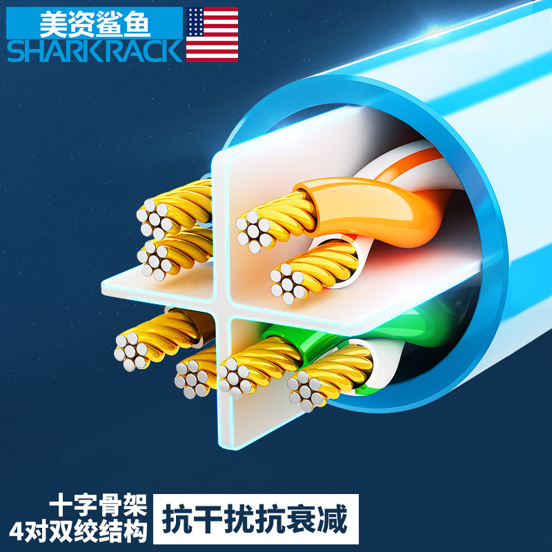 U.S.-funded shark Super six types of oxygen-free copper engineering grade 10 Gigabit indoor and outdoor network route CAT6A home computer router broadband monitoring high-speed finished network jumper cable