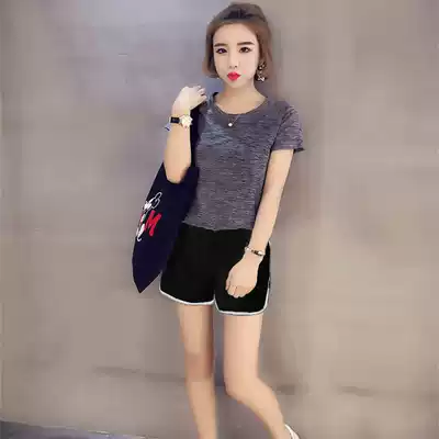 Orange T with black shorts orange T with white shorts Green T with black shorts Green T with white pants Gray T with black shorts Gray T with white pants purple two-piece set (short sleeves short