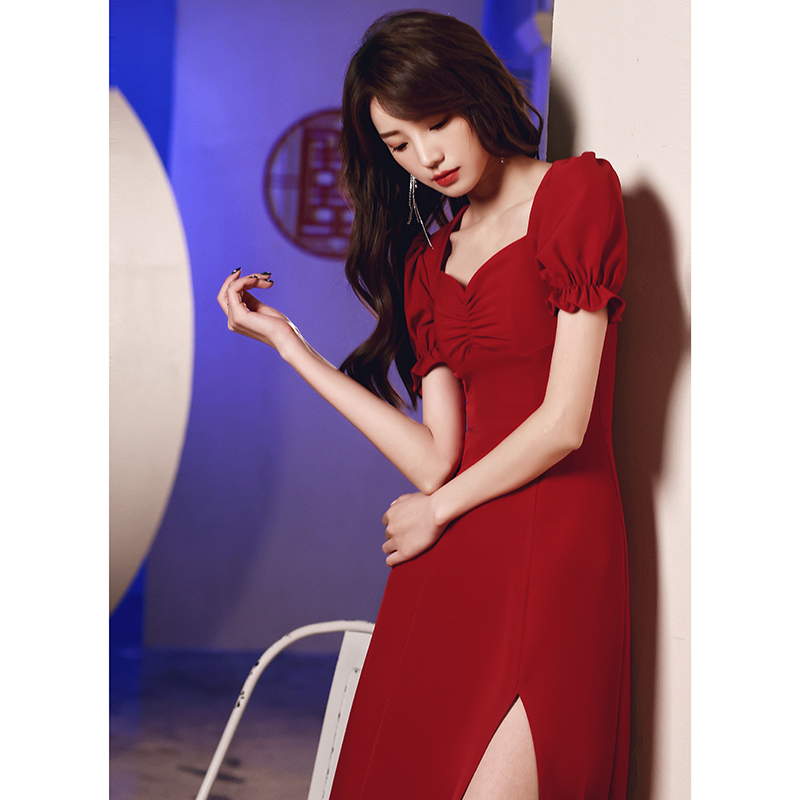 Toast bride red and thin summer thin, usual wear engagement dress small individual dress dress in summer