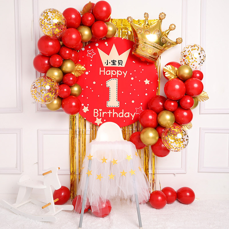 Baby's 100-day first birthday decoration scene National Tide theme balloon party National Dynasty poster background wall