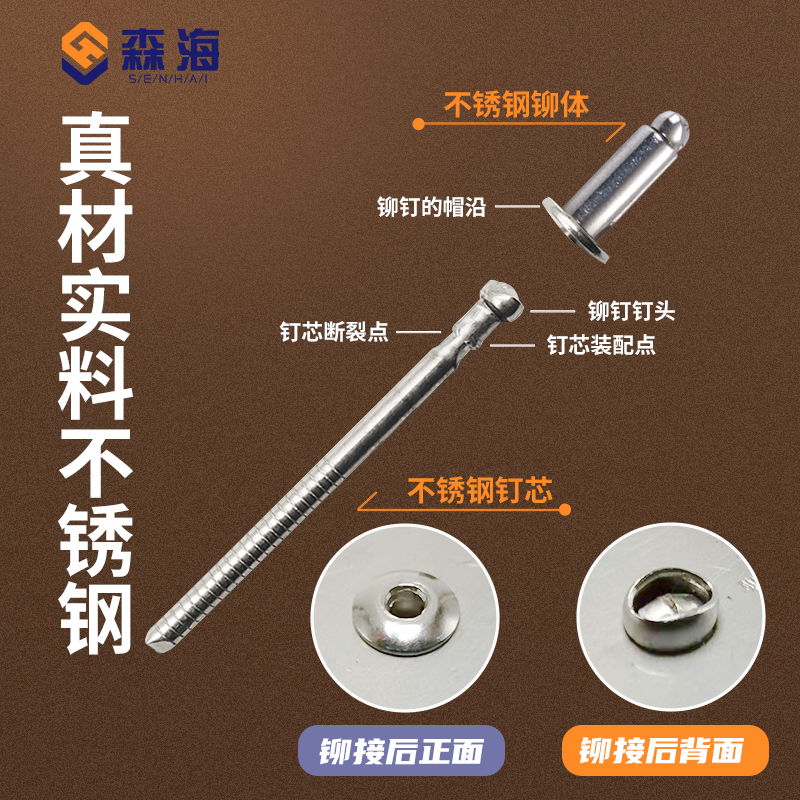 Full Stainless Steel Pumping Core Rivet Opening Type Flat Round Head White Steel Pull Stud Full Steel Pull Nail High Strength White Rigid Rivet