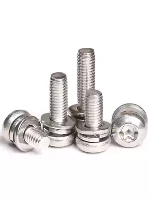 Spot 304 stainless steel GB2672 three-combination screw plum blossom pan head machine wire comes with flat elastic pad screw M3