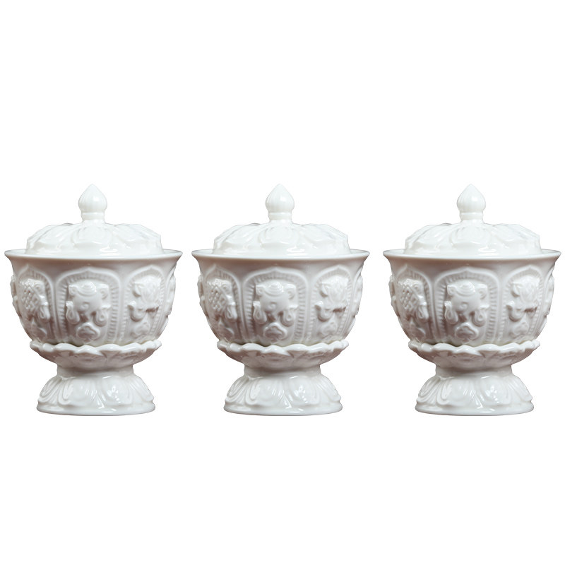 Dai Yutang Ceramic Tantra Eight Auspicious Holy Water Cups for Buddhas to Offer Immortal Buddha Statues to Guanyin Water Purification Cups for the God of Wealth