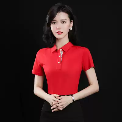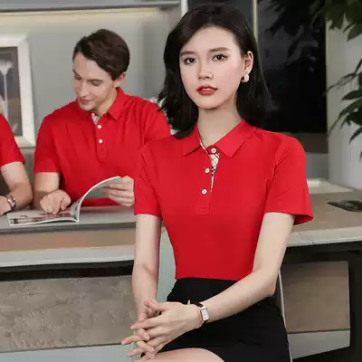Summer work clothes jacket single professional staff work clothes custom printed logo summer lapel short sleeve work clothes T-shirt