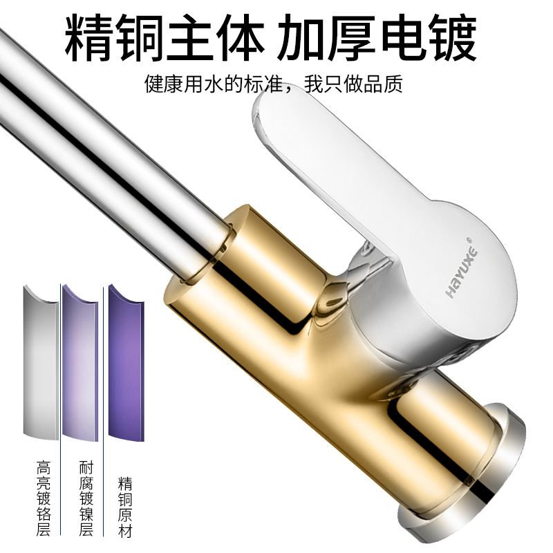 Full copper body kitchen faucet household washbasin single hot and cold two-in-one double-outlet booster two-speed rotary faucet