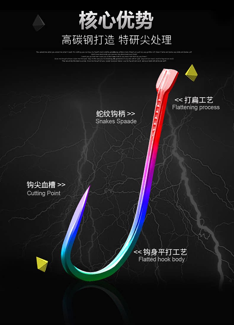 Colorful new Kantong fish hook bulk hook improved blood groove flying bump special black pit Rofei carp double hook fishing