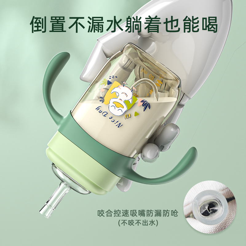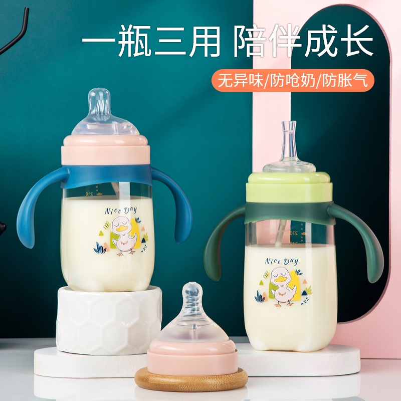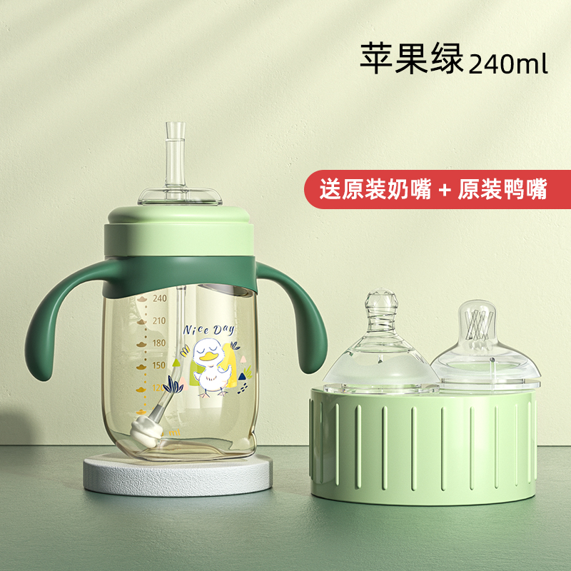 Children's suction tube cup drinking milk 1-2-3-year-old handle big baby ppsu suction bottle big child resistant brand