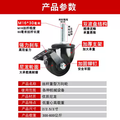 Longer m16 screw caster with brake 2 inch 2 5 inch screw load-bearing wheel 3 inch nylon super heavy-duty universal wheel