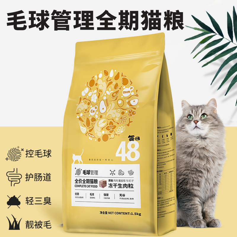 Temporary cat food] Daily hair balling cat food row hair protects intestines grain-free meat freeze-dried full-price full-term 1 5kg 3 catties