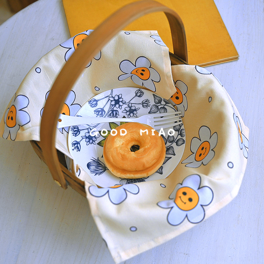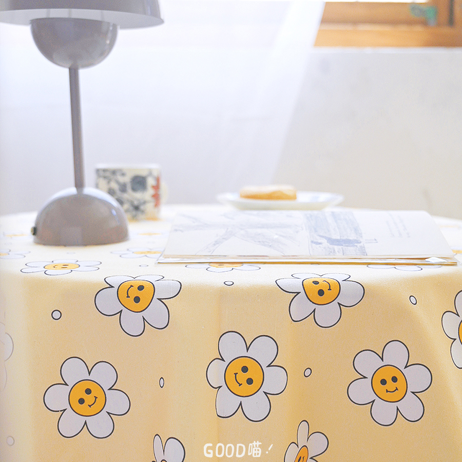 goodmiao) waterproof tablecloth cute smiling face oil-proof cloth tablecloth Korean style ins style long table cotton and linen coating